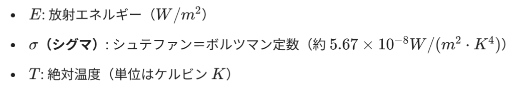 この数式における最大の特徴は、放射エネルギーEが絶対温度Tの4乗に比例するという点です。